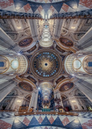 London, England, church, painting, architecture, arch, portrait display, Altar, interior, photo manipulation, UK, cathedral, Peter Li, symmetry, St. Pauls Cathedral, ceiling, HD Phone Wallpaper