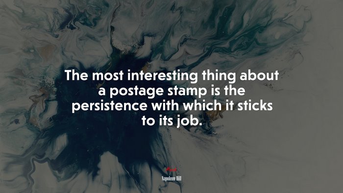 The most interesting thing about a postage stamp is the persistence with which it sticks to its job. (Napoleon Hill)