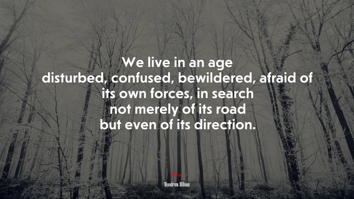 We live in an age disturbed, confused, bewildered, afraid of its own forces, in search not merely of its road but even of its direction. (Woodrow Wilson)