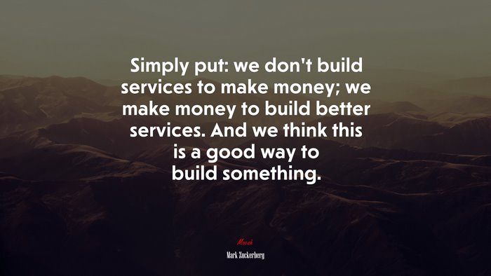 Simply put: we don’t build services to make money; we make money to build better services. And we think this is a good way to build something. (Mark Zuckerberg)
