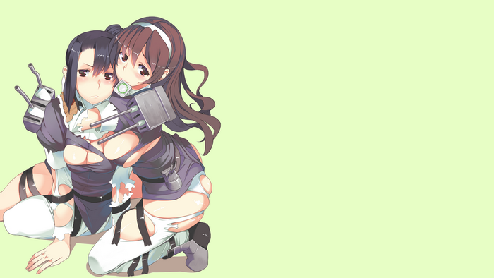 anime girls, torn clothes, condom, Nachi (KanColle), Ashigara (KanColle), Kantai Collection, Ryuuta, HD Wallpaper