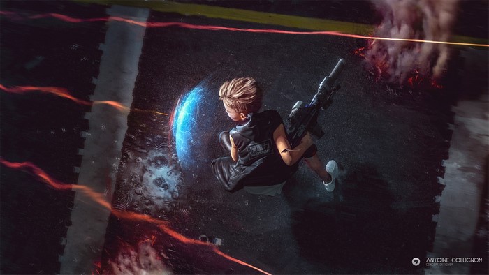 artwork, girls with guns, Antoine Collignon, cyborg, digital art, ArtStation, science fiction, cyberpunk, weapon, HD Wallpaper